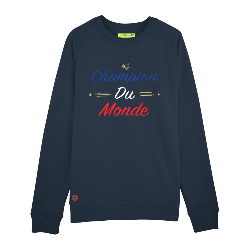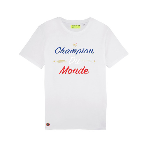 Après cette coupe du monde de Foot, tu veux montrer à la terre entière que tu es Française et que ce n'est pas parce que tu es une femme que tu ne sais pas taper dans un ballon ? Alors porte fièrement ce T-shirt Brodé Champion du Monde navy sur ton corps de rêve !