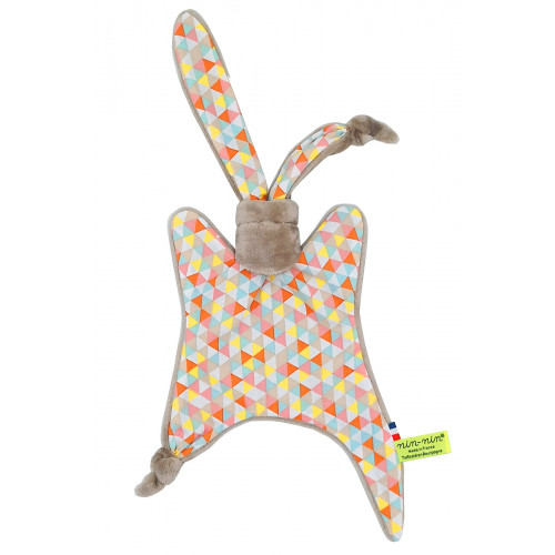 Our Personalised Baby Comforter is made of two types of fabrics. A very soft touch fabric on one side that will reassure and settle your baby and a coton side with a wide variety of colours and designs. It has extra-tiny ends to enable the newborn baby to catch very easily his Nin-Nin Comforter.