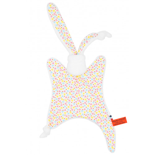 Our Personalised Baby Comforter is made of two types of fabrics. A very soft touch fabric on one side that will reassure and settle your baby and a coton side with a wide variety of colours and designs. It has extra-tiny ends to enable the newborn baby to catch very easily his Nin-Nin Comforter.