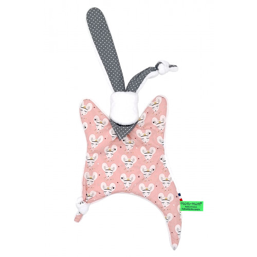 Our Personalised Baby Comforter is made of two types of fabrics. A very soft touch fabric on one side that will reassure and settle your baby and a coton side with a wide variety of colours and designs. It has extra-tiny ends to enable the newborn baby to catch very easily his Nin-Nin Comforter.