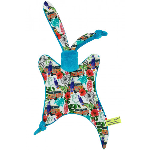 Our Personalised Baby Comforter is made of two types of fabrics. A very soft touch fabric on one side that will reassure and settle your baby and a coton side with a wide variety of colours and designs. It has extra-tiny ends to enable the newborn baby to catch very easily his Nin-Nin Comforter.