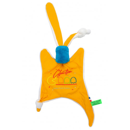 Our Personalised Baby Comforter is made of two types of fabrics. A very soft touch fabric on one side that will reassure and settle your baby and a coton side with a wide variety of colours and designs. It has extra-tiny ends to enable the newborn baby to catch very easily his Nin-Nin Comforter.