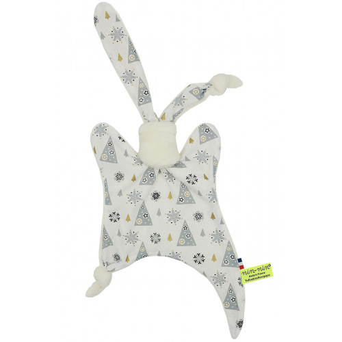 Our Personalised Baby Comforter is made of two types of fabrics. A very soft touch fabric on one side that will reassure and settle your baby and a coton side with a wide variety of colours and designs. It has extra-tiny ends to enable the newborn baby to catch very easily his Nin-Nin Comforter.