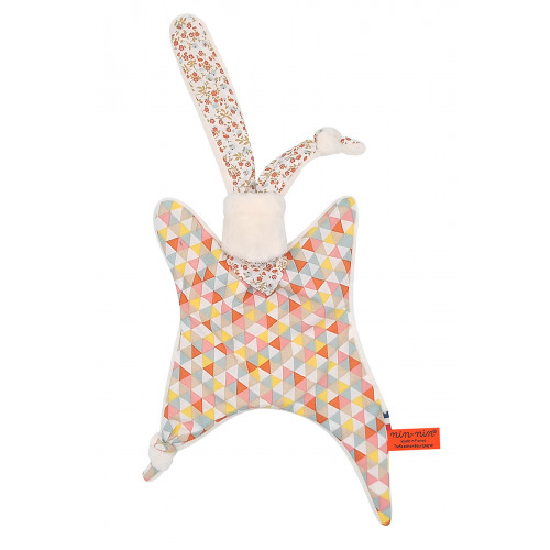 Our Personalised Baby Comforter is made of two types of fabrics. A very soft touch fabric on one side that will reassure and settle your baby and a coton side with a wide variety of colours and designs. It has extra-tiny ends to enable the newborn baby to catch very easily his Nin-Nin Comforter.
