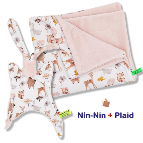 This birth box contains 1 Nin-Nin (cuddly toy) delivered in a tattooed cube (box), 1 Bib Bandana all delivered in 1 Lunch Bag accompanied by 1 Congratulations Card.