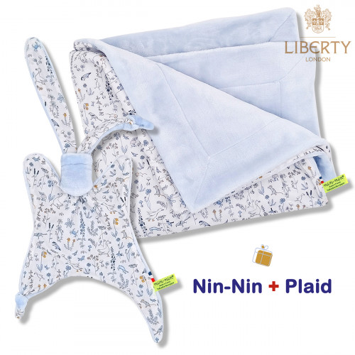 Ce coffret de naissance contient 1 Nin-Nin (doudou) livré dans un cube (boîte) tatoué, 1 Bavoir Bandana le tout livré dans 1 Lunch Bag accompagné d'1 Carte de Félicitation.