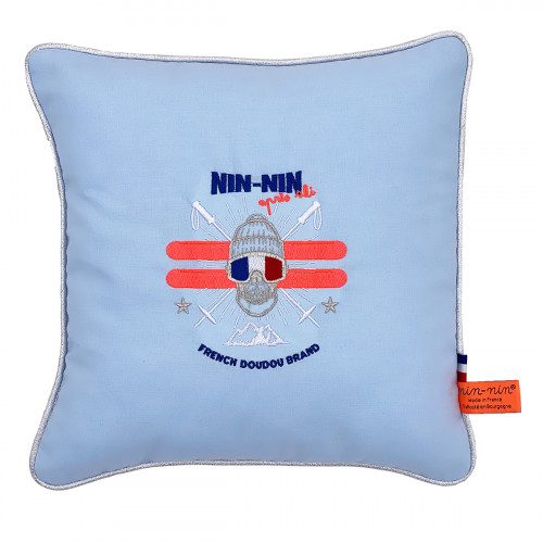 This personalized pillow is just too cool. The "Nimbus Bleu" print will blow your mind. It is THE original birth gift to offer without hesitation. In the baby's room or as a decoration in the living room , you will love this Nin-Nin cushion!